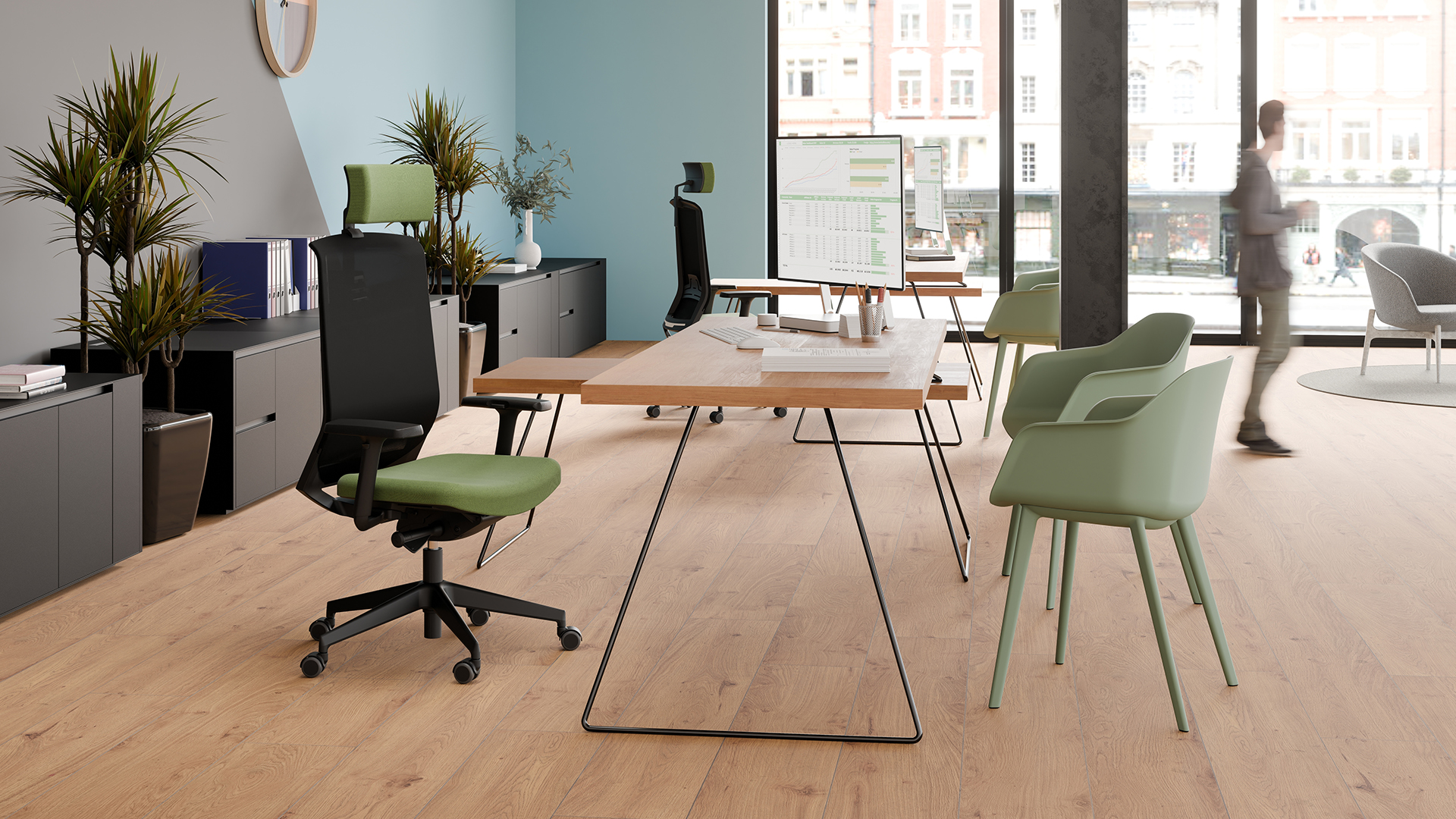 A complete range available with mesh backrest - headrest, black or white frame. A generous comfort, offering ergonomical advantages for the good of all, in all working spaces. KENO H is equipped with an height adjustable lumbar support, 3D or 1D armrests, auto-adjust DYNAFLEX mechanism, automatic tension adjustments according to the morphology, standard use up to 110 kgs - sliding seat in option.