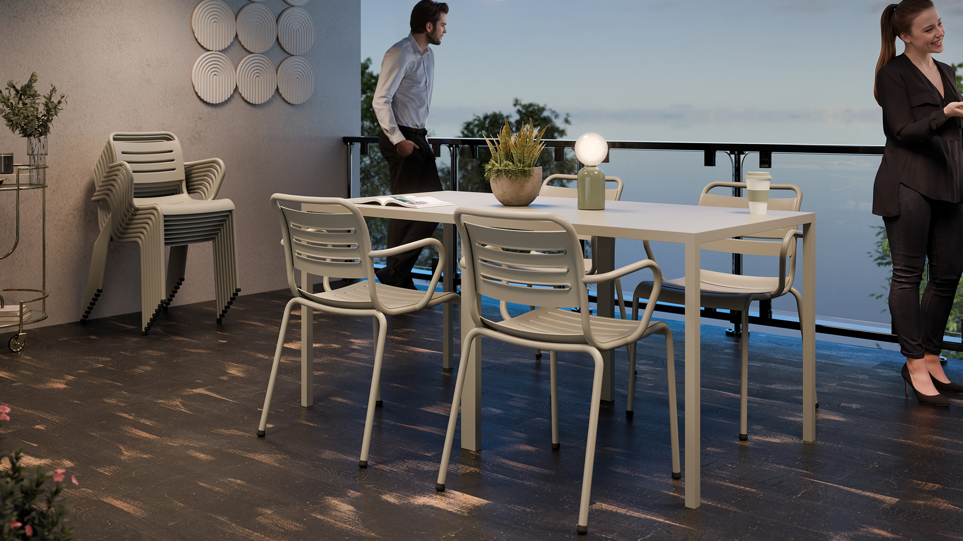 Découvrez la gamme «NOMIYA», qui signifie "Bistro" en japonais, comme un clin d’oeil à son designer franco-japonais Yun Yasumoto. Conçue pour équiper les espaces extérieurs comme intérieurs, Nomiya incarne l’élégance et la sobriété tout en reflétant l’esprit des terrasses à la française. Les assises, conçues en aluminium recyclé, allient fonctionnalité, légèreté et durabilité et permettent d’équiper aussi bien pour les espaces privés que professionnels. Disponible en version chaise et fauteuil (4 coloris) et complétée par une table auto-nivelante pour une meilleure une adaptabilité aux différents sols.